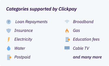 Here are some of the categories supported by ClickPay —